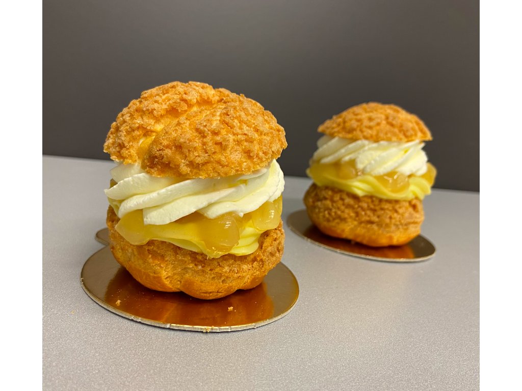 Mini francouzský větrník: Hruškový (žloutkový krém, hruškové coulis, šlehačka)
