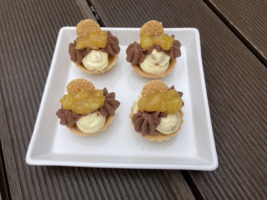 - mango s maracujou (mangové componé s maracujou, krém ze smetany s čokoládou)
